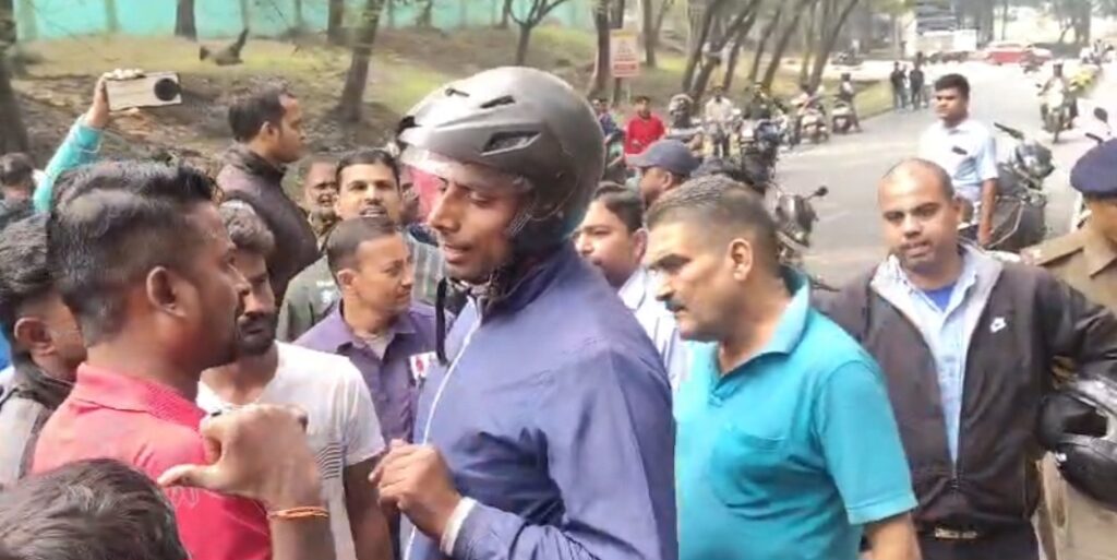 टक्कर इतनी जोरदार थी कि बाइक सवार युवक गंभीर रूप से घायल हो गया. घटना के बाद स्थानीय लोग घटनास्थल पर जुट गए और तीखी नाराज़गी व्यक्त की. आक्रोशित लोगों ने चेकिंग कर रहे एक ट्रैफिक कर्मी को घेर लिया और कुछ देर के लिए बंधक बना लिया. घंटों हंगामा होता रहा. सूचना मिलते ही स्थानीय थाना पुलिस मौके पर पहुंची और स्थिति को नियंत्रित किया. घायल बाइक सवार को तत्काल अस्पताल भेजा गया, जहां उसका इलाज जारी है.
