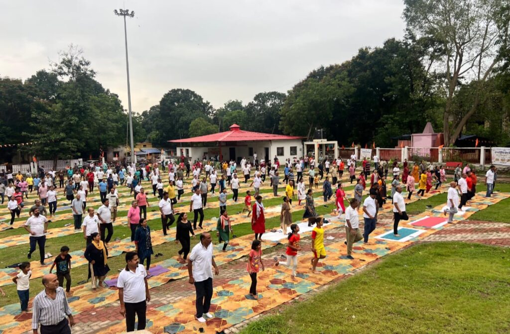 जमशेदपुर : श्री लक्ष्मीनारायण मंदिर जीर्णोद्धार समिति और क्रीड़ा भारती के संयुक्त तत्वावधान में श्री लक्ष्मी नारायण मंदिर परिसर में योग दिवस मनाया गया। यह पहला अवसर था, जब श्री लक्ष्मीनारायण मंदिर में सामूहिक तौर पर लोगों ने योग किया हो। सैकड़ों योग प्रेमियों ने यहां आकर योगाभ्यास किया। योग शिक्षक नवीन चौरसिया ने सभी को योग कराया। जमशेदपुर पश्चिमी के विधायक सरयू राय, क्रीड़ा भारती के उपाध्यक्ष शिवशंकर सिंह, क्रीड़ा भारती के प्रांत मंत्री राजीव कुमार, जनता दल (यूनाइटेड) के पूर्वी सिंहभूम जिलाध्यक्ष सुबोध श्रीवास्तव समेत सैकड़ों लोगों ने शनिवार को विश्व योग दिवस के मौके पर योग किया।