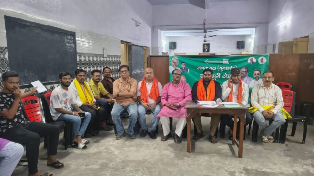 जमशेदपुर : गोलमुरी थाना क्षेत्र के बूथ लेवल एजेंटों की बैठक जद(यू) गोलमुरी थाना क्षेत्र अध्यक्ष शमशाद खान की अध्यक्षता में आंध्र स्कूल, टिनप्लेट में आयोजित हुई। इस अवसर पर मुख्य रूप से उपस्थित जनता दल (यूनाइटेड) के जिला अध्यक्ष सुबोध श्रीवास्तव ने मार्गदर्शन प्रदान किया। अपने संबोधन में श्री श्रीवास्तव ने सभी बूथ लेवल एजेंटों से कहा कि वे अभी से अपने-अपने बूथ की मजबूती पर ध्यान दें। उन्होंने गोलमुरी मंडल के 50 बूथों के एजेंटों को मतदाता सूची के अद्यतन पर विशेष बल देने का निर्देश दिया। इसके तहत नए योग्य मतदाताओं का नाम जोड़े जाने तथा गैर-प्रासंगिक नामों को हटाने के लिए बूथ लेवल ऑफिसर (BLO) के साथ समन्वय स्थापित करने की आवश्यकता पर जोर दिया गया।