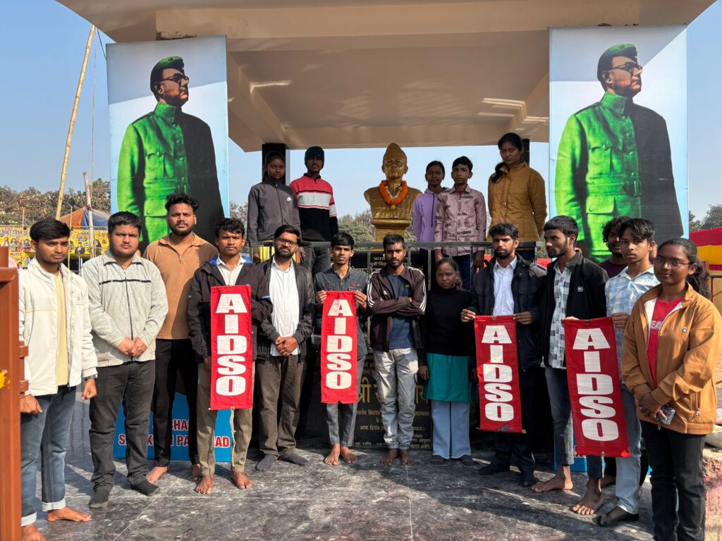 जमशेदपुर : ऑल इंडिया डेमोक्रेटिक स्टूडेंट्स ऑर्गेनाइजेशन (AIDSO) जमशेदपुर नगर इकाई द्वारा आज़ादी आंदोलन की गैर-समझौतावादी धारा के महानायक नेताजी सुभाष चंद्र बोस की 130वीं जयंती 23 जनवरी 2026 को साकची आमबगान मैदान में मर्यादापूर्वक मनाई गई। कार्यक्रम की शुरुआत प्रदेश सचिव सोहन महतो द्वारा नेताजी सुभाष चंद्र बोस की प्रतिमा पर माल्यार्पण कर उन्हें श्रद्धांजलि अर्पित करने के साथ हुई।