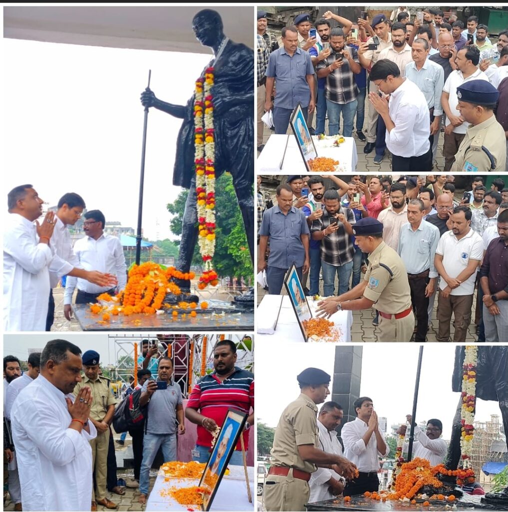 जमशेदपुर : गांधी जयंती के अवसर पर मानगो गांधी मैदान स्थित राष्ट्रपिता महात्मा गांधी की प्रतिमा पर मंत्री बन्ना गुप्ता, उपायुक्त अनन्य मित्तल, एसएसपी कौशल किशोर, ग्रामीण एसपी ऋषभ गर्ग, एसडीएम शताब्दी मजूमदार ने माल्यार्पण कर श्रद्धासुमन अर्पित किया. देश के पूर्व प्रधानमंत्री लाल बहादुर शास्त्री को भी सभी ने उनकी जयंती पर नमन किया।