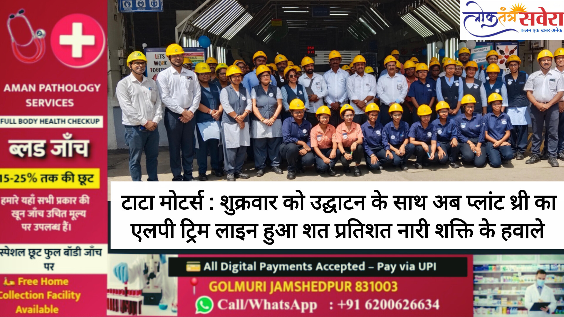 जमशेदपुर : नारी शक्ति का सम्मान और नारी श्रम को प्रोत्साहित करने के लिए टाटा मोटर्स ने अनूठा पहल की है ! इसी कड़ी में शुक्रवार को यूनियन के अध्यक्ष शशि भूषण प्रसाद के कार्य क्षेत्र प्लांट थ्री स्थित एलपी ट्रिम लाइन ( फिटमेंट लाइन) का पूरा बागडोर नारी शक्ति को समर्पित कर दिया गया। शुक्रवार को प्लांट हेड सुनील तिवारी, टाटा मोटर्स वर्कर्स यूनियन अध्यक्ष शशि भूषण प्रसाद, महामंत्री आरके सिंह, डिवीजन हेड किरण नरेंद्रन , एचआर हेड प्रणव कुमार, ट्रिम क्षेत्र के आफिस बेयरर प्रकाश विश्वकर्मा, यूनियन के अन्य पदाधिकारी समेत प्रबंधन के वरीय पदाधिकारी इस पल का साक्षी बनें ।