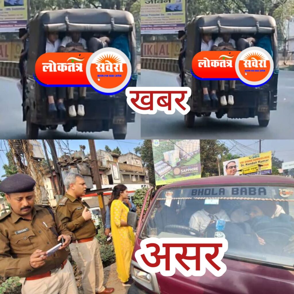 जमशेदपुर : लोकतंत्र सवेरा न्यूज़ ने गुरुवार 30 नवंबर को स्कूल वैन और ऑटो में बच्चों को ठूंस ठूंस कर फर्राटा भरते स्कूल वैन और ऑटो की खबर को प्रमुखता से उठाया था. ठीक उसके कुछ की घंटो बाद यानी शुक्रवार को आदित्यपुर खरकई ब्रिज के पास इसका असर दिखता नजर आया. जहां एसडीएम पारूल सिंह तथा डीएसपी चंदन वत्स ने बच्चों को स्कूल पहुंचाने वाली स्कूल वैन पर कार्रवाई की जमशेदपुर से आदित्यपुर की तरफ जा रही एक स्कूल वैन में छोटे बड़े 18 बच्चे सवार थे।