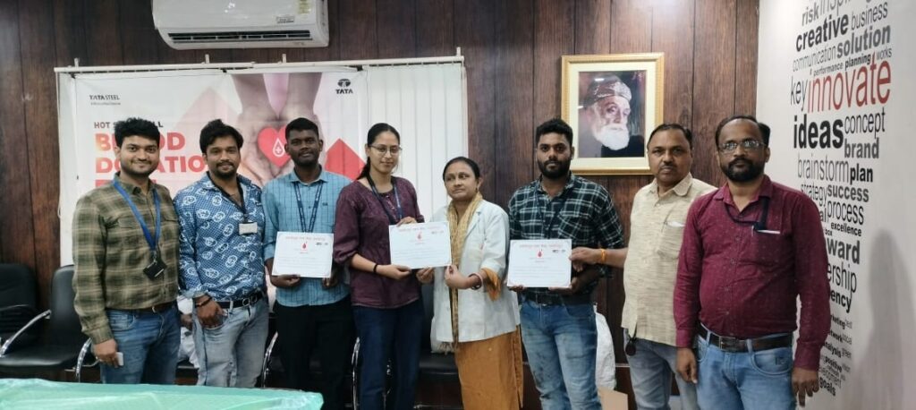जमशेदपुर : टाटा स्टील के एच.एस.एम जेडीसी द्वारा एकदिवसीय रक्तदान शिविर का आयोजन किया गया. जिसमें 94 रक्तदाताओं ने रक्तदान किया. रक्तदाताओं का हौसला बढ़ाने हेतु मुख्य अतिथि के रूप में टाटा मेन हॉस्पिटल के डॉक्टर मनीष सिंह उपस्थित थे. साथ ही ब्लड बैंक से निर्जला झा जी उपस्थित थी. कार्यक्रम को सफल बनाने में जे.डी.सी चेयरमैन सह विभागीय चीफ पी.एस.एस गणेश, वाइस प्रेसिडेंट राकेश कुमार, कार्यकारिणी सदस्यों अमन दीप, बलिराम सिंह, चंद्रशेखर ठाकुर, अमित कुमार सिंह, निरंजन महापात्रा, मोहन सिंह, अभिनंदन सिंह, एस.एन.सिंह व अजय कुमार मिश्रा का सराहनीय योगदान रहा। साथ ही अंजलि कुमारी, सनाथ मुरमू, रमेश राणा, अभिषेक सिंह ने पहली बार रक्तदान किया।
