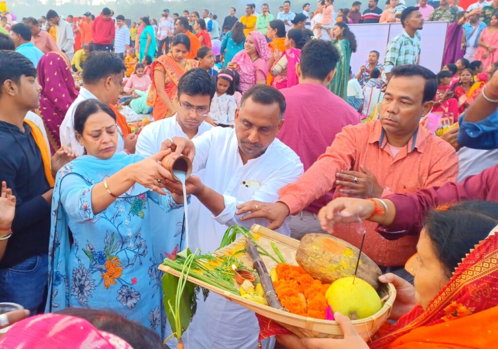 जमशेदपुर पश्चिमी से इंडिया गठबंधन के प्रत्याशी बन्ना गुप्ता ने अपनी धर्मपत्नी सुधा गुप्ता के साथ छठ के पावन अवसर पर सोनारी दोमुहानी संगम घाट पर अस्ताचलगामी और