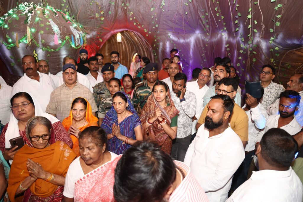 इस अवसर पर मंच के संस्थापक मंटू तिवारी, अप्पू तिवारी, पप्पू कुमार, ऋषभ सिंह, जे.पी. सिंह, पप्पू उपाध्याय, मुन्ना चौबे, श्रीनिवास तिवारी, ऋतिक चौबे, विशु सिंह, राजेश ओझा, अशोक राय, सहित समिति के अन्य सदस्य मौजूद रहे। पूजा पंडाल को इस बार काल्पनिक गुफा की आकृति में तैयार किया गया है, जिसमें अलादीन का चिराग, कंकाल, भूत और भव्य विद्युत सज्जा विशेष आकर्षण का केंद्र बनी हुई है।