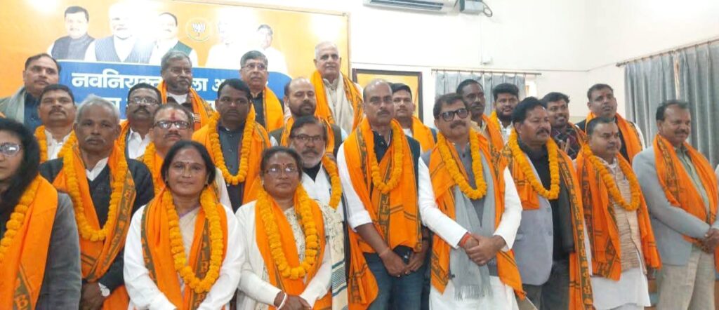 जमशेदपुर : झारखंड भाजपा के रांची स्थित प्रदेश कार्यालय में रविवार को प्रदेश नेतृत्व द्वारा नव-निर्वाचित सभी जिला अध्यक्षों के स्वागत समारोह सह परिचयात्मक बैठक का आयोजन किया गया। इस अवसर पर भाजपा जमशेदपुर महानगर के नवनिर्वाचित जिलाध्यक्ष संजीव सिन्हा ने भी सहभागिता की। स्वागत समारोह के दौरान प्रदेश अध्यक्ष बाबूलाल मरांडी एवं कार्यकारी प्रदेश अध्यक्ष आदित्य साहू ने जमशेदपुर महानगर अध्यक्ष संजीव सिन्हा का गर्मजोशी से अभिनंदन करते हुए संगठनात्मक दायित्वों के सफल निर्वहन के लिए शुभकामनाएं दीं।