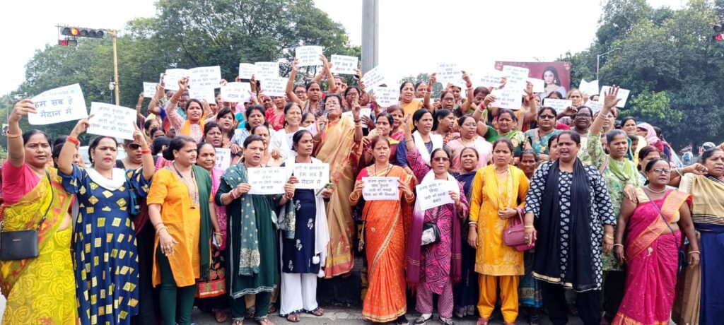 प्रदर्शन के दौरान कल्याणी शरण, ममता कपूर, चंद्रकांता सिंह, संजना साहू, लक्ष्मी मिर्धा, ममता, उर्मिला दास सहित सैकड़ों की संख्या में महिलाएं मौजूद रही।