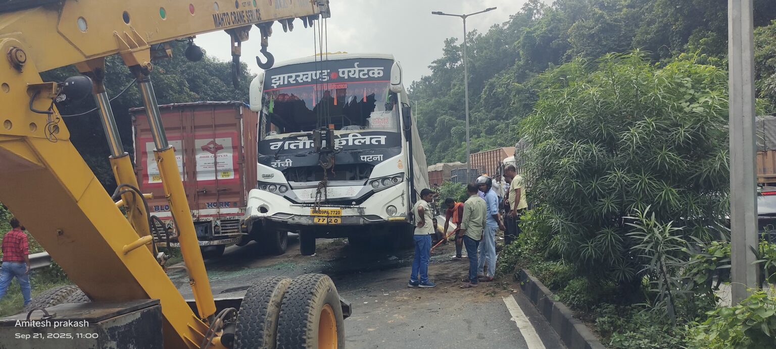 जमशेदपुर : रामगढ़ रांची एनएच 33 पर चुट्टूपालू घाटी में रविवार को यात्री बस पलट गई. इस हादसे में एक बाइक सवार की जान बाल बाल बची. इस हादसे के बाद राष्ट्रीय राजमार्ग का दोनों लेन जाम हो गया. घटना की सूचना मिलते ही रामगढ़ पुलिस घटनास्थल पर पहुंची और पलटी हुई बस को हटाने का प्रयास किया. जानकारी के अनुसार झारखंड पर्यटन नामक बस( बीआर 09 पीआर 7720) घाटी में ही ब्रेकडाउन हो गया था. इस वजह से बस पर सवार सभी यात्रियों को उतार कर, उस बस की मरम्मत की जा रही थी. इसी दौरान अचानक गाड़ी में लगा ब्रेक फेल हो गया और वह पीछे की तरफ लुढ़कने लगा।
