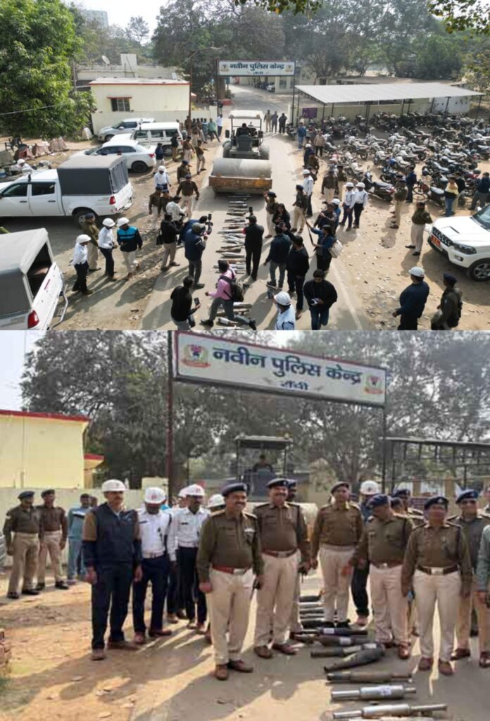 राॅंची। शनिवार को ट्रैफिक नियमों का उल्लंघन करने वालों के खिलाफ सख्त कार्रवाई की गई। ट्रैफिक एसपी राकेश सिंह और ग्रामीण एसपी की अगुवाई में चलाए गए विशेष अभियान के दौरान शहर में 250 से अधिक प्रेशर हॉर्न और करीब 400 मॉडिफाइड साइलेंसर पर बुलडोजर चलाया गया। ट्रैफिक पुलिस ने इस अभियान के तहत कुल 700 से ज्यादा अवैध साइलेंसर और प्रेशर हॉर्न जब्त किए थे, जिन्हें बाद में नष्ट कर दिया गया।