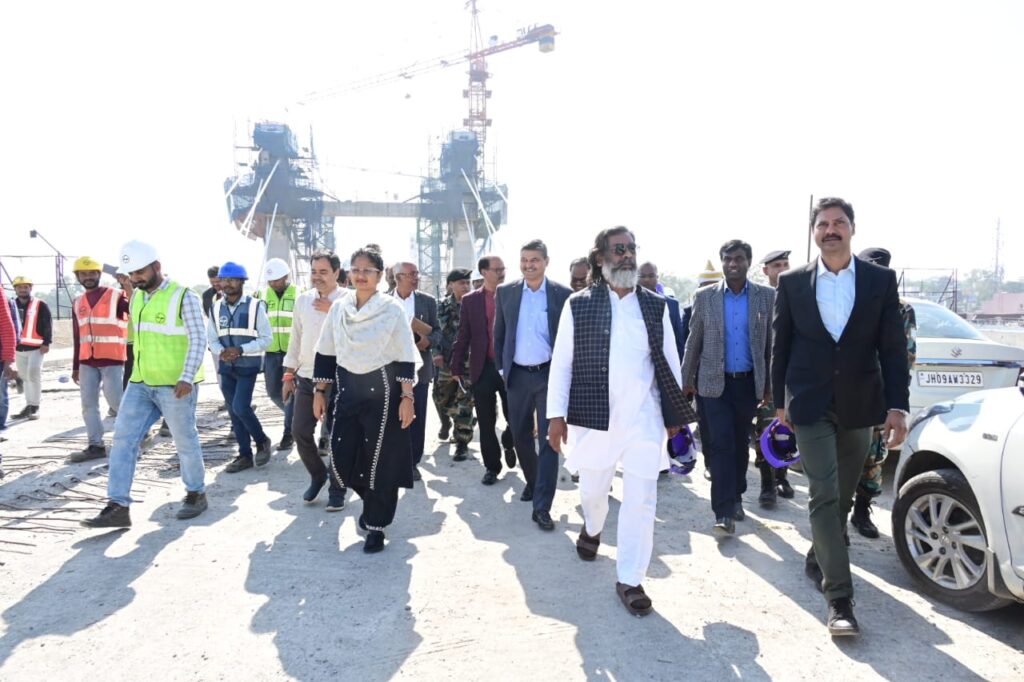 RANCHI : मुख्यमंत्री हेमन्त सोरेन ने आज राजधानी रांची में मेकॉन चौक (वन भवन के नजदीक) से सिरमटोली चौक तक बन रहे निर्माणाधीन फ्लाईओवर का औचक निरीक्षण किया। मौके पर विधायक श्रीमती कल्पना सोरेन एवं राज्य सरकार के वरीय अधिकारी भी मौजूद रहे। निरीक्षण के दौरान मुख्यमंत्री ने फ्लाईओवर के निर्माण कार्य की प्रगति का जायजा लिया और संबंधित अधिकारियों से फ्लाईओवर की विभिन्न पहलुओं पर चर्चा की। मुख्यमंत्री ने अधिकारियों को निर्देशित किया कि वे इस फ्लाईओवर निर्माण कार्य की गुणवत्ता और समय सीमा पर विशेष ध्यान दें।