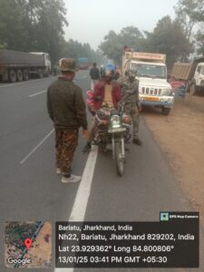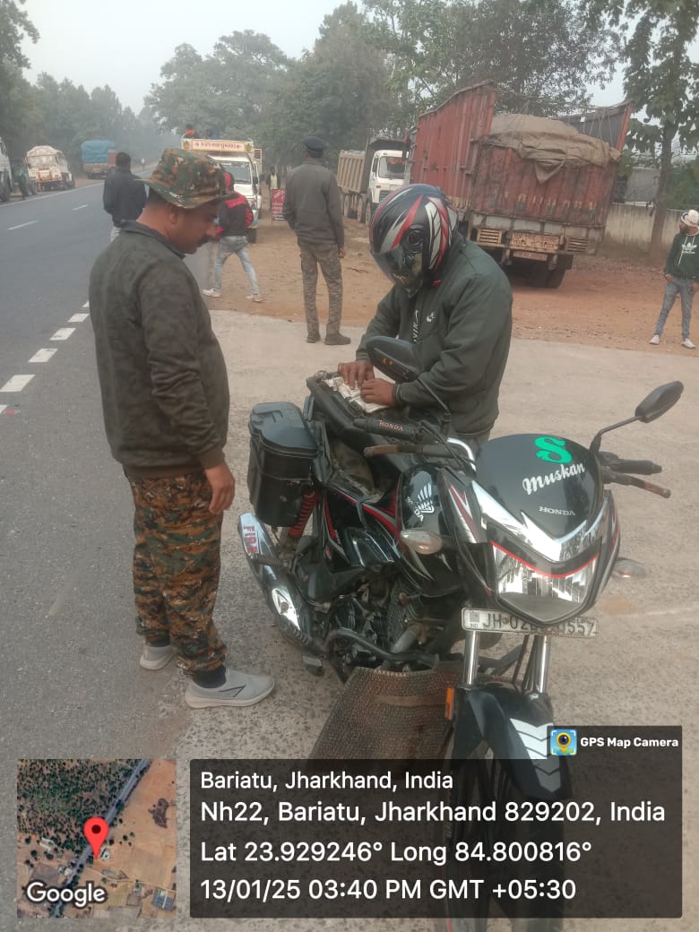 बारियातू / कुतुबुद्दीन : लातेहार उपायुक्त और पुलिस अधीक्षक के निर्देश पर सोमवार को बारियातू थाना गेट के समीप परिवहन विभाग और थाना पुलिस के संयुक्त तत्वावधान में वाहन चेकिंग अभियान चलाया गया। इस अभियान का नेतृत्व बारियातू थाना प्रभारी देवेंद्र कुमार और परिवहन विभाग के एमवीआई सुनील कुमार ने किया।अभियान के दौरान रांची-चतरा मुख्य सड़क पर गुजरने वाले सभी छोटे-बड़े वाहनों की जांच की गई। (नीचे भी पढ़े)