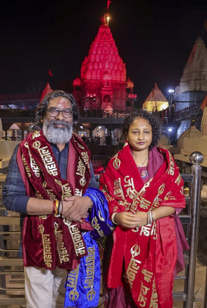 रांची : मुख्यमंत्री हेमंत सोरेन ने सोमवार को उज्जैन स्थित महाकालेश्वर मंदिर में पत्नी कल्पना सोरेन के साथ पूजा-अर्चना की और राज्य के सुख और समृद्धि की कामना की. सीएम ने सोशल मीडिया पर तस्वीर पोस्ट कर लिखा : आदि हैं, अनंत हैं, कालों के काल हैं. शिव हैं, शक्ति हैं, वो महाकाल हैं. जय श्री मृत्युंजय महाकाल! जय बाबा महाकाल! हर हर महादेव!